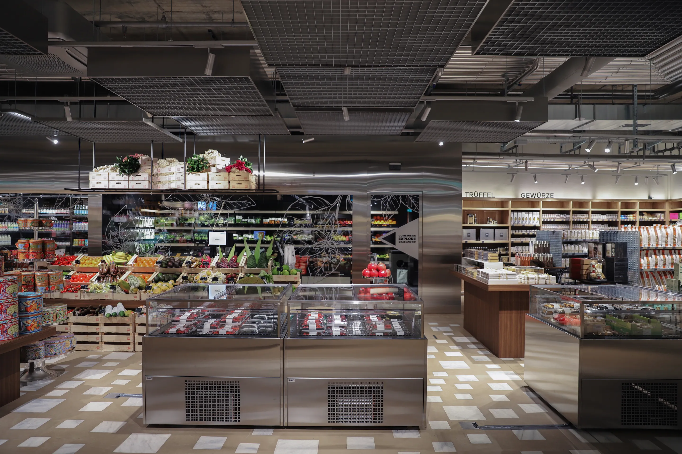 Each floor of Globus Basel tells its own story. Interior design, color schemes and visual concepts introduce customers to a new world on every level.